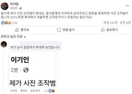 "졸지에 조작범 됐다" 이기인에 누리꾼들 재치 있게 재반박