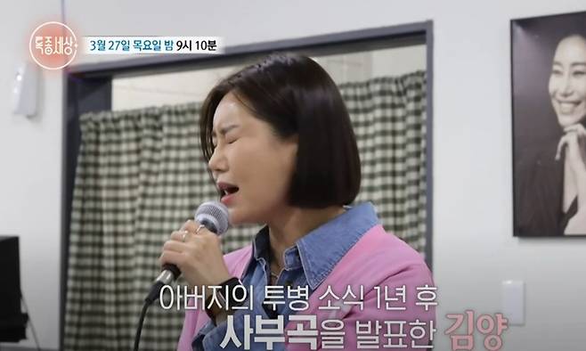 아버지는 투병 중일 당시에도 항상 딸을 응원하며 전폭적인 지지를 보내왔다고. 김양은 "항상 우리 딸 최고라고 해주셨던 분이다. 너무 보고 싶다"라고 그리움을 드러냈다. 그러면서 "진짜 안 울고 싶었는데 아빠 이야기하니까 또 (눈물이 난다)"라고 이야기했다.
