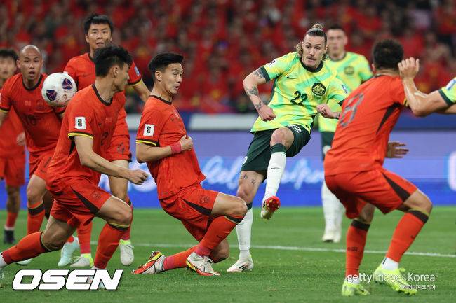 중국 대표팀은 지난 25일 중국 항저우 항저우 스포츠파크 경기장에서 열린 2026 국제축구연맹(FIFA) 북중미 월드컵 아시아지역 3차예선 C조 8차전에서 호주에 0-2로 완패했다.