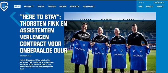 헹크는 28일(한국시간) 구단 홈페이지를 통해 "토르스텐 핑크 감독과 그의 코칭 스태프들이 계약을 연장했다. 챔피언스리그 플레이오프가 눈앞으로 다가온 가운데 핑크 감독과 그의 코치인 제바스티안 한, 고란 콘티치는 헹크와 무기한 계약을 연장했다"고 발표했다.
