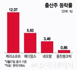 28일 한국거래소에 따르면 캐리소프트는 전날 730원(12.07%) 오른 6780원에 거래를 마쳤다. 이 밖에도 출산주로 분류되는 메디앙스(5.93%), 네오팜 (3.46%), 웅진씽크빅 (0.86%) 깨끗한나라(0.45%), 모나리자(0.18%), 남양유업(0.28%), 삼성출판사(0.40%) 등 관련 종목들도 일제히 오름세를 보였다.