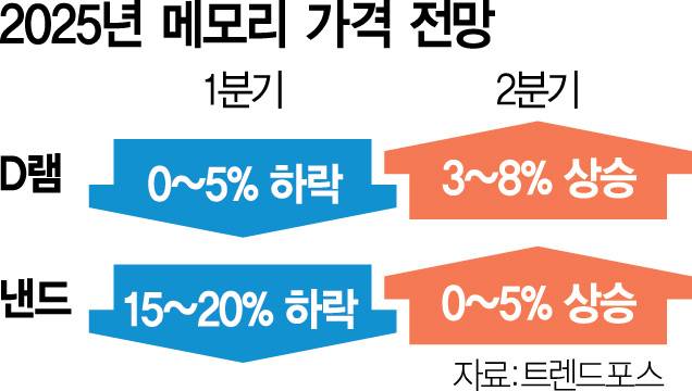 지난해 4분기 이후 범용 제품을 중심으로 메모리 가격이 하락 전환했지만 최근 들어 중국의 내수 진작 카드인 이구환신 정책과 AI 응용처 확대 등으로 수요가 다시 증가하자 업체들이 가격을 올린 것이다. 이를 반영해 시장조사 업체 트렌드포스는 D램과 낸드 가격이 올 1분기 하락 폭을 줄이고 2분기 상승세로 돌아설 것으로 내다봤다. 제품별로 2분기 D램은 3~8%, 낸드는 0~5% 가격 상승을 전망했다.