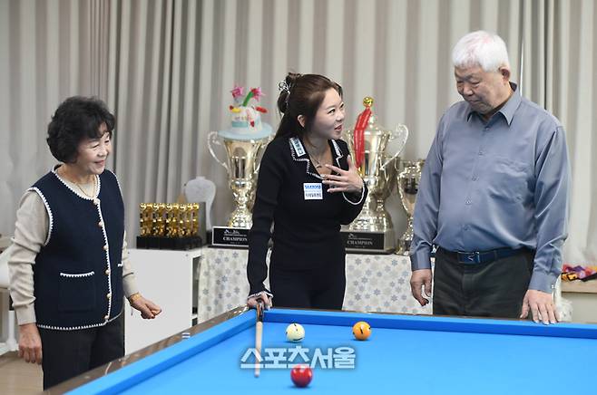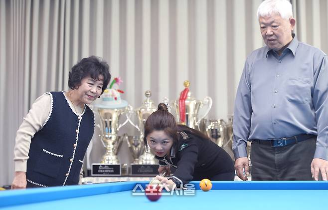여자 프로당구의 슈퍼스타 김가영(43·하나카드)의 아버지인 김용기(75) 씨와 어머니 박종분(71) 씨는 이렇게 말하며 딸을 바라봤다. 이번시즌 LPBA 정규투어 3~8차를 연달아 휩쓴 그는 최근 제주도에서 막을 내린 ‘시즌 왕중왕전’ 월드챔피언십에서도 우승, ‘1강’의 위용을 뽐냈다. 무려 7개 투어 연속 우승이라는 대업을 일궈냈다.