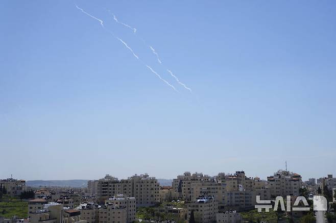 [라말라=AP/뉴시스] 27일(현지 시간) 요르단강 서안지구 라말라에서 이스라엘의 방공 시스템 아이언돔이 예멘발 미사일을 요격하기 위해 발사되고 있다. 2025.03.28.