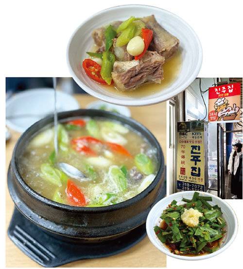 1955년 남대문시장에서 문을 연 70년 노포 '진주집’의 꼬리찜과 꼬리곰탕을 먹고 난 뒤엔 항상 '뭔가 대단한 일’을 할 수 있을 것 같은 기분이 든다. 이른 새벽부터 세상과 몸을 부딪치며 살아가는 시장 상인들과, 그 시장을 들르는 어머니들 그리고 저녁 무렵 모여드는 인근 직장인들까지 모두가 즐겨 찾는 곳이다. 진주집은 그 특유의 담백함과 진한 육향으로 유명한 꼬리곰탕도 좋지만, 역시 이 집의 백미는 꼬리찜이다. '소 한 마리당 하나’라는 한정된 수량의 소꼬리를 푹 끓여내는 꼬리찜에는 소꼬리가 인간에게 내줄 수 있는 모든 것이 담겼다. 보글보글 거품이 피어오르는 뚝배기에서 꼬리 한 토막을 끄집어내 접시에 올린다. 접시에 올린 큼직한 꼬리에서 고기를 젓가락이나 포크로 먼저 뜯어 먹은 후, 젤라틴이 가득한 꼬리뼈는 엄지와 집게손가락으로 잡고 먹으면 된다. 꼬리찜을 먹자마자 마치 DNA 속 깊숙이 숨겨놓은 야성의 본능이 살아나는 듯하다. 꼬리찜의 육수까지 다 먹어갈 즈음 잘 삶은 소면을 넣고 다시 끓여준다. 이 소면까지 먹어야 진주집의 꼬리찜을 제대로 먹었다 할 수 있다. 꼬리찜을 위한 특제소스도 맛있다.