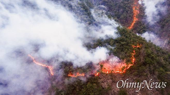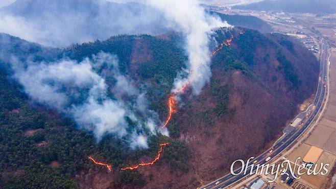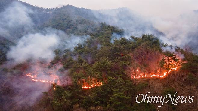 [오마이포토] 화염이 지나간 검은 산