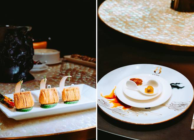 그렇다 해도 금붕어 모양의 크리스털 블루 쉬림프 딤섬과 리버 쉬림프가 들어간 핸드백 모양의 퍼프 페이스트리(Puff Pastry)는 꼭 먹어 볼 것. 맛도 맛인데 창의적인 터치가 들어가 보는 즐거움까지 더한다. 몰캉한 딤섬 안에 풍부하게 들어 있는 해산물, 바삭한 식감 안에 살아 숨쉬는 원재료의 맛. 하나같이 뒤돌아서면 생각나는 맛들이다.