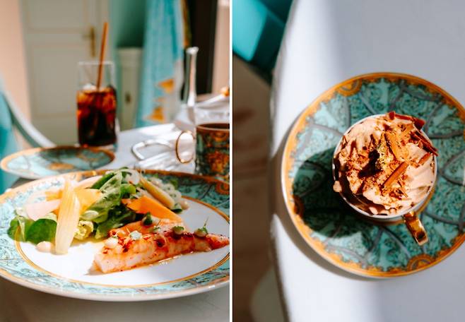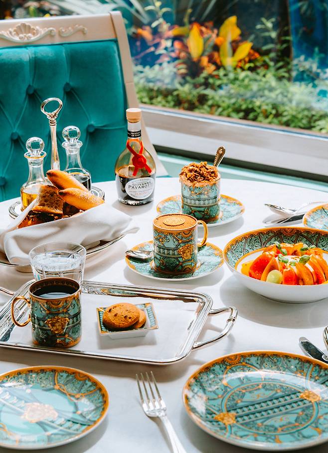 과연 여심을 울리는 모든 걸 갖춘 카페다. 들어서자마자 청록색과 금빛이 어우러진 고급스러운 베르사체의 인테리어 디자인은 시작에 불과하다. 베르사체 식기 컬렉션에 담겨 나오는 클래식한 이탈리아식 페이스트리와 커피, 애프터눈 티 세트, 수제 초콜릿 등은 카메라만 들었다 하면 인생숏이 쏟아지는 풍경이다. 전형적인 '베르사체식' 경험이 가능해지는 순간.