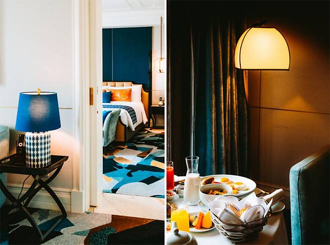 룸 타입은 총 7가지. 이 중 특히 추천하고 싶은 타입은 정원 전망의 '주니어 스위트(Junior Suite)'다. 마카오의 문화적 역사는 바닥부터 조명까지 이어지는 정교한 선과 패턴, 전통 직물 등에서 물씬 느껴진다. 80㎡의 거실과 킹사이즈 침대가 놓인 침실은 널찍널찍해 개방감이 상당하다. 통창 너머로 리스보아의 상징적인 장소인 '자르딤 세크레토(Jardim Secreto)'를 한눈에 내려다볼 수 있다는 건 또 다른 장점이다. 조식으로 인 룸 다이닝을 신청하면 아침 햇빛에 반짝이는 정원 뷰를 보며 객실에서 식사를 즐길 수도 있다. 강력 추천.