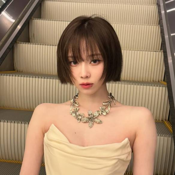 층을 많이 낸 스타일링이 취향이 아니라면, 하츠투하츠 지우, 스테이씨 윤처럼 하단에만 층을 적절히 내는 테슬컷을 고려해 보자. 앞서 말했던 허쉬컷, 레이어드 컷보다 층을 최소화하고, 턱 쪽 하단에만 질감 처리를 해 조금 무게감 있게 떨어지는 게 차이점. 매직기로 끝단을 가볍게 펴주면 깔끔하고 시크한 단발을 완성할 수 있다.