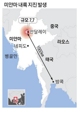 28일 미얀마 중부 내륙에서 규모 7.7의 강진이 발생했다.