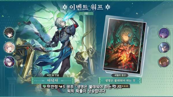나찰과 완·매, 모든 상시 5성 캐릭터 중 한 명을 무료로 교환할 수 있다.