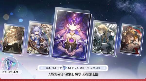 동료가 보낸 축하 카드 하나를 선택해 열면 성옥 1600개, 연료 10개 보상을 얻는다.