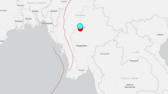 진앙은 인구 120만 명의 미얀마 제2 도시 만달레이에서 서남서쪽으로 33km, 수도 네피도에서 북북서쪽으로 248km 각각 떨어진 지점입니다.