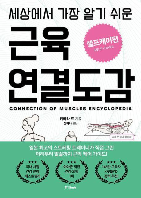 지은이는 일본의 스트레칭 트레이너. ‘목 근육 치료를 위해 팔을 풀어준다’는 식으로, 말로 하는 설명보다 환자들이 더 직관적으로 이해할 수 있게 근육 연결 그림을 직접 그리기 시작했다. 앞서 나온 『세상에서 가장 알기 쉬운 근육연결도감』의 초점이 전문가와 일반인 사이에서 근육별 연결에 대한 이해를 돕는 것이라면, 새로 나온 ‘셀프케어편’은 실전편. 전방, 후방, 외측, 나선 등 ‘연결’을 중심으로 장을 나눠 흉쇄유돌근, 정강이와 발목, 척주기립근, 발바닥, 늑간근, 복사근, 고관절, 승모근, 회전근개 등 몸 곳곳을 아우른다. 책 두께 역시 곁에 두고 수시로 펼쳐보기에 적당하다.