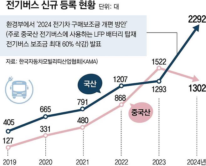 한국자동차모빌리티산업협회(KAMA)에 따르면 국내에 신규 등록된 전기버스 중 중국산 비중은 2019년 23.9%에서 꾸준히 늘어나 2023년에는 54.1%에 달했다. 국내 전기버스 시장의 절반 이상을 중국산이 차지한 셈이다.