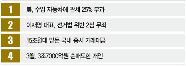 # 3월 마지막 거래일도 마찬가지였다. 28일 국내 증시는 전일 대비 2%가까이 하락했다. 코스피지수는 2557.98포인트를 기록하며 보름 만에 2500포인트대로 하락했다. 같은 기간 1.94% 하락한 코스닥지수는 693.76포인트로 떨어졌다. 코스닥지수가 700포인트대 아래로 하락한 건 지난 1월 2일(686.63포인트) 이후 3개월 만이다. 3월 31일 재개할 공매도와 4월 2일 미국의 상호관세 부과를 앞두고 투자자들의 경계심이 높아졌기 때문으로 풀이된다.