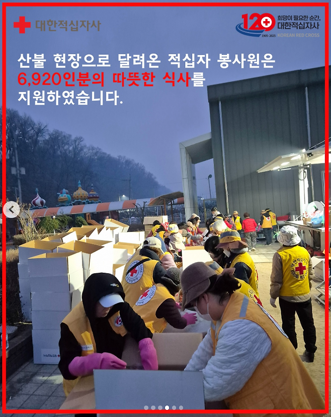 한편 대한적십자사는 대형 산불 이재민 구호를 위한 긴급 모금을 다음 달 30일까지 진행 중이다. 홈페이지, 네이버 해피빈을 통해 참여할 수 있다.