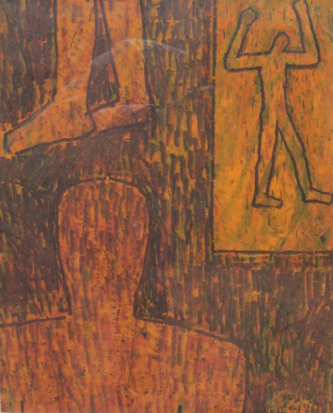 크레파스의 긁힌 선, 유화의 묵직한 군상 속에서 작가는 끊임없이 묻습니다.