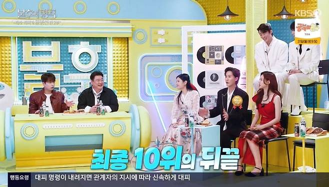 10위를 차지한 신유는 "전 잘 모르는 프로그램이라. 그런 프로그램이 있었나요?"라며 "전 '불후의 명곡'이 최고라 생각한다. 경연 프로로선 '불후의 명곡' 만한 게 없죠"라고 너스레를 떨었다.