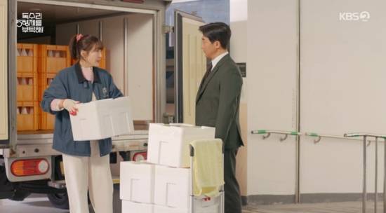 한동석은 마광숙에게 다가가 "활기찬 아침입니다, 마 대표. 아침 일찍부터 수고가 많습니다. 뭐 좀 도와줄까요?"라며 말을 걸었다.