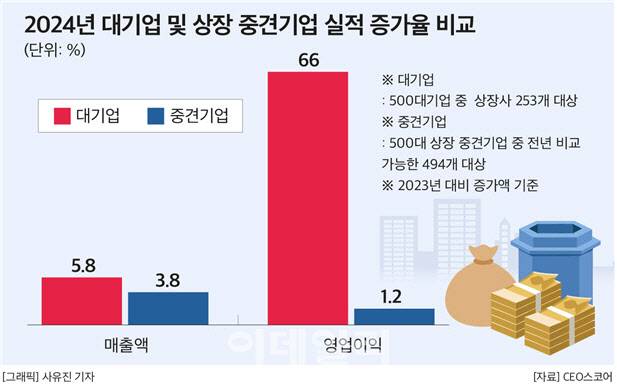 대기업 영업익 66% 늘때 중견은 1.2% 증가 그쳐