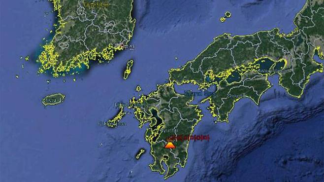 ▲ 일본 기리시마 화산 위치