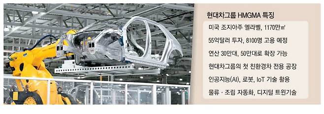 지난 27일(현지시간) 미국 조지아주 엘라벨에 위치한 현대차 신공장인 '메타플랜트 아메리카(HMGMA)'. 북미에서 가장 첨단적인 자동차 공장이라는 평가처럼 총 1000대가 넘는 조립용 로봇과 수백 대의 부품 운반 로봇들이 직원을 대신하고 있다.