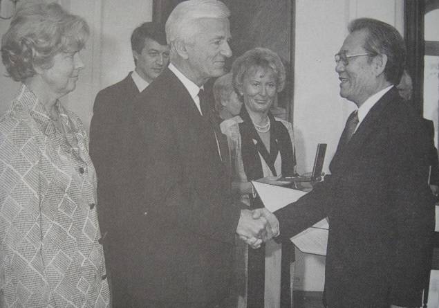 | ▲ 윤이상이 1988년5월 독일 연방 대공로훈장을 받을 때 모습입니다. |
