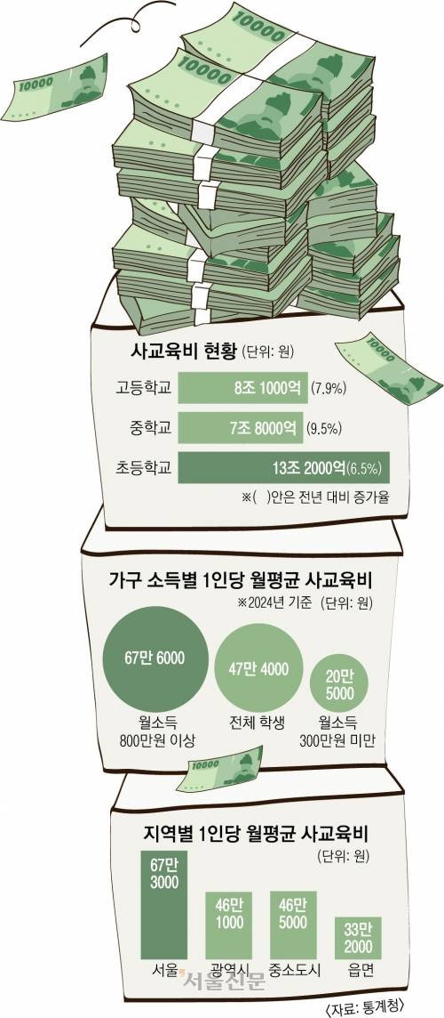 조상식 동국대 교육학과 교수는 “철저하게 돈으로 나뉘어 있는 사교육 시장은 진입 장벽을 만들면서 사회 불평등을 고착화하고 있다”고 지적했다.
