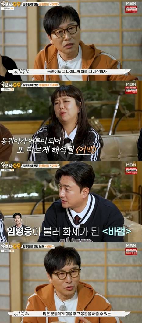 이날 김종환은 자신의 곡인 '여백'을 부른 정동원에 대해 이야기하며 "동원이가 이 노래를 부를 거라고 생각 못 했다. 동원이가 선택한 거다"라고 말했다.