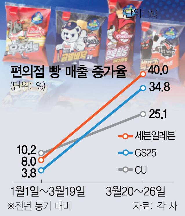 편의점 업계 관계자는 “크보빵 판매가 전체 매출에서 차지하는 비중은 크지 않지만 모객효과가 큰 만큼 다른 제품을 함께 구매하는 연쇄 효과가 나타난다”며 “크보빵이 1분기 편의점들의 효자상품이 될 것”이라고 내다봤다.
