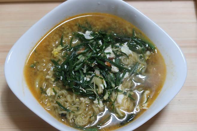| ▲ 달래를 넣고 끓인 라면 달래를 넣고 끓인 라면 사진입니다 |