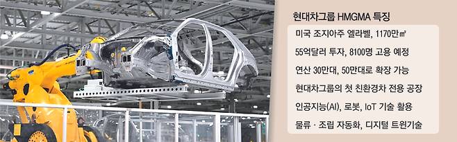 지난 27일(현지시간) 미국 조지아주 엘라벨에 위치한 현대차 신공장인 ‘메타플랜트 아메리카(HMGMA)’. 북미에서 가장 첨단적인 자동차 공장이라는 평가처럼 총 1000대가 넘는 조립용 로봇과 수백 대의 부품 운반 로봇들이 직원을 대신하고 있다.