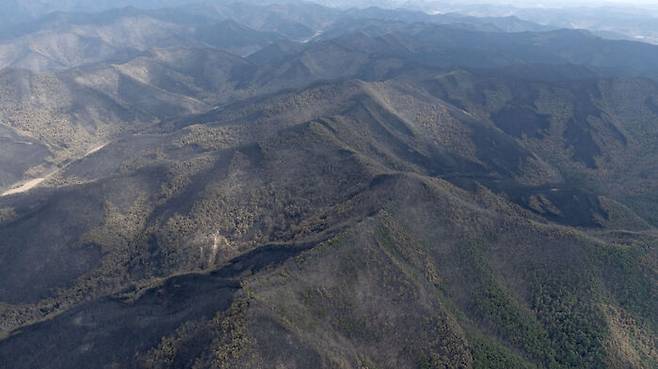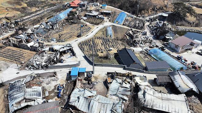 ▲ 31일 경북 청송군 진보면 기곡리 한 마을이 산불에 폐허가 돼 있다.
