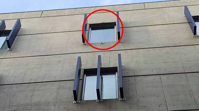 그 위로 건물 외벽에 설치돼 있던 파란 마감재 하나가 떨어져 나갔습니다.