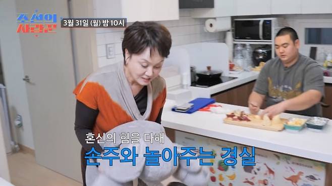 31일 방송될 '조선의 사랑꾼'에서는 이경실이 혼신의 힘을 다해 손자 이훈과 놀아주는 모습이 공개된다.