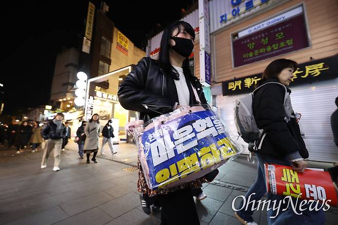| ▲ 31일 오후 서울 종로구 광화문앞에서 열린 ‘내란수괴 윤석열 즉각 파면 행진’에 참석했던 시민들이 헌법재판소앞까지 행진을 마친 뒤 시위에 사용한 손피켓을 가지고 해산하고 있다. |