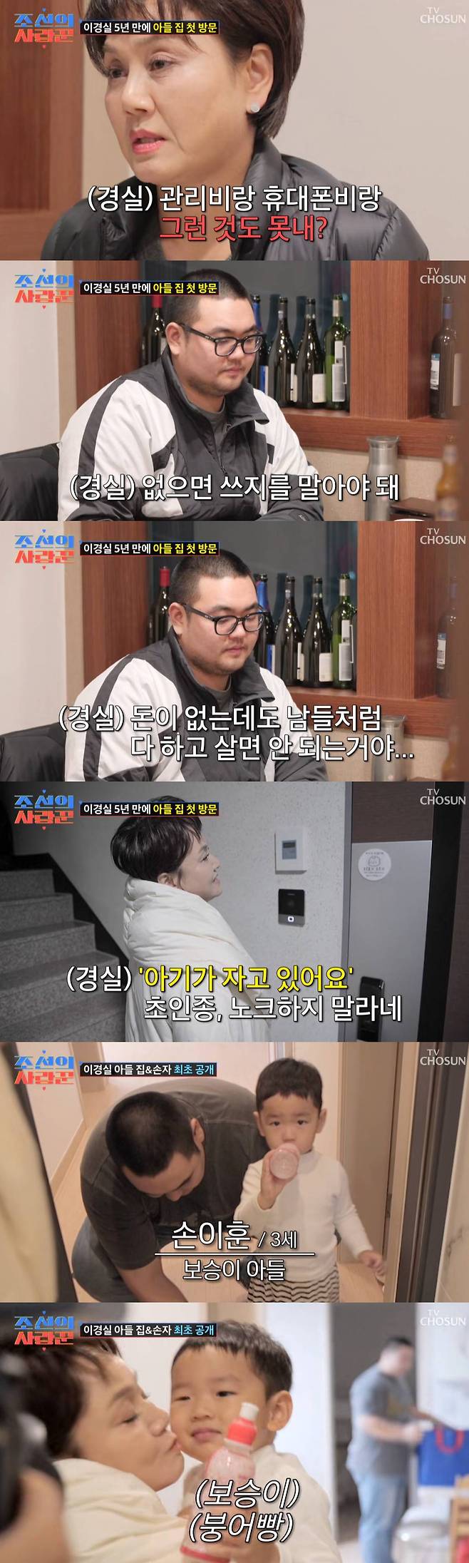 31일 방송된 TV조선 '조선의 사랑꾼'에서는 이경실이 5년 만에 처음으로 아들 손보승의 집을 찾아간 장면이 전파를 탔다.