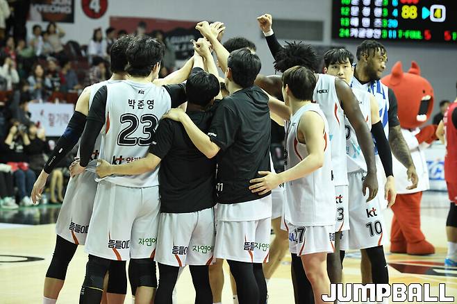 KT가 리바운드의 힘을 앞세워 승리를 가져왔다.