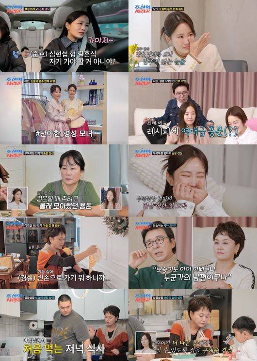 혼주 한복을 맞추기 위해 서울로 올라온 김지민 엄마가 ‘예비 사위’ 김준호와 딸의 통화 가운데 소환되는 모습도 포착됐다. 김준호는 곁에 예비 장모님이 계신 줄 모른 채, 심현섭과 같은 날 결혼하는 김종민 결혼식 참석 여부를 의논하기 위해 김지민과 통화했다. 혼주 한복 소식에 김준호는 “요즘은 다 시밀러 룩으로 맞추냐, 우리 엄마 것은 힙하게 모자 달린 것으로 부탁한다”고 농담을 해 화기애애한 분위기를 자아냈다. 통화가 끝난 후 김지민은 “아빠가 살아 계셨으면, 제일 좋아할 사위였을 것이다. 유머 감각이 비슷하다”며 기억을 더듬었다. 한편, 엄마가 혼주 한복을 곱게 차려입은 모습에 김지민은 그만 눈물을 터트렸다. 그는 “아빠도 안 계신데, 엄마 혼자 (한복을) 입고 계시니까 만감이 교차했다”고 후문을 전했다.
