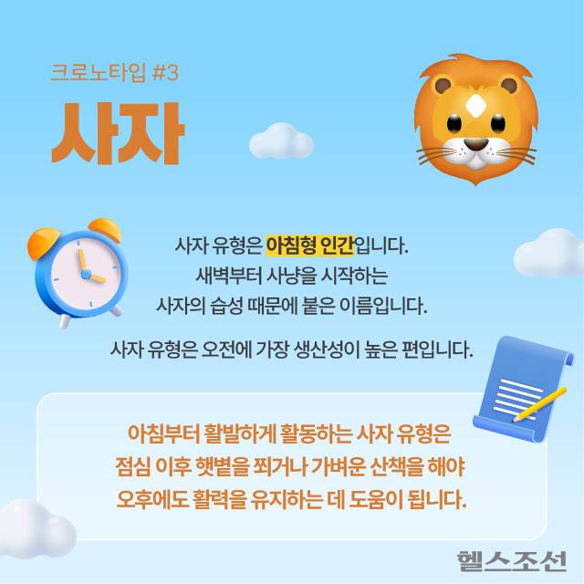 사자 유형은 오전에 가장 생산성이 높은 편입니다.