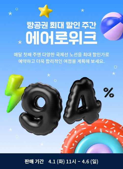 에어로케이(이하 에어로케이항공)는 4월 1일 오전 11시부터 4월 6일 자정까지 항공권 최대 할인 주간 '에어로위크' 프로모션을 통해 최대 94% 할인된 항공권을 판매한다고 1일 밝혔다.