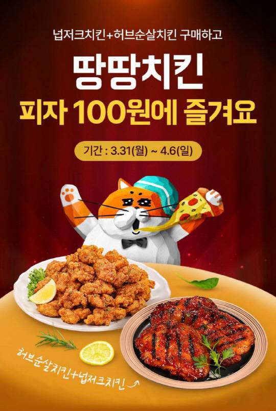 순살치킨 브랜드 땅땅치킨이 봄철을 맞아 배달의민족 앱을 통해 '100원의 행복, 모두가 즐거운 파티!' 단독 프로모션을 실시한다. 이번 행사는 3월 31일부터 4월 6일까지 일주일간 한정으로 진행된다.