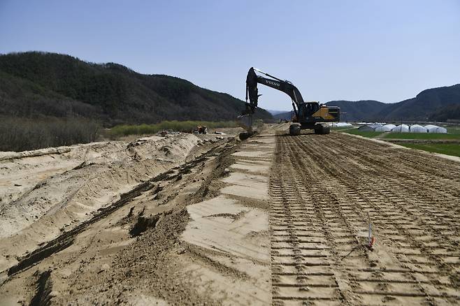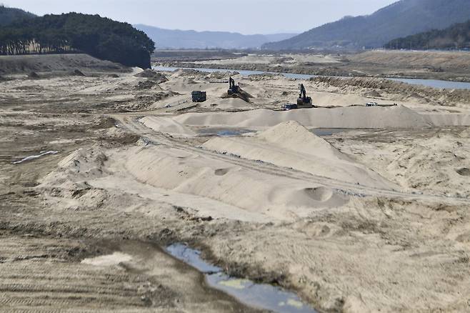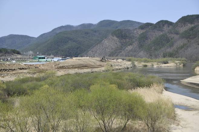 | ▲ 수목이 없고 하상이 높지 않은 이런 곳에서도 대대적인 준설공사가 행해지고 있다. |