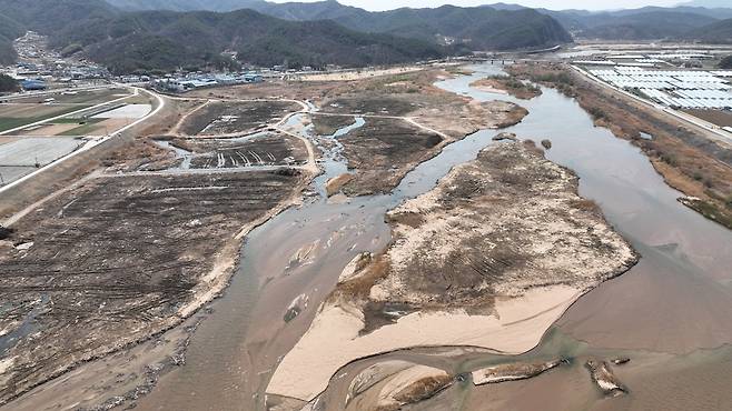 | ▲ 황강 용주지구에선 하천 전체 모든 수목을 일거에 제거해버렸다. 이곳에 연초록빛 새봄은 더이상 없다. |