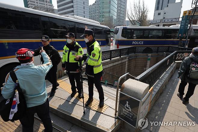 (서울=연합뉴스) 류영석 기자 = 헌법재판소가 윤석열 대통령 탄핵심판 선고일을 발표한 1일 헌재 인근 서울 지하철 3호선 안국역 일부 출구가 폐쇄돼 있다. 안국역은 선고 당일인 4일 첫 차부터 역을 폐쇄한 뒤 무정차 운행할 예정이다. 2025.4.1