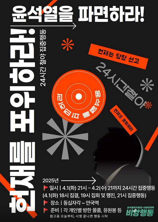 한편, 비상행동은 탄원 캠페인과 함께 ‘24시간 철야 집중행동’에 나선다. ‘헌재를 포위하라, 윤석열을 파면하라’는 구호를 앞세워 1일 저녁 9시부터 24시간 동안 서울 광화문 동십자각 일대에서 집회와 행진을 벌일 예정이다.