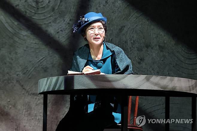 (서울=연합뉴스) 류효림 기자 = 배우 최수진이 1일 서울 종로구 대학로 YES24스테이지에서 열린 뮤지컬 라흐헤스트 프레스콜에서 주요 장면을 시연하고 있다. 2025.4.1