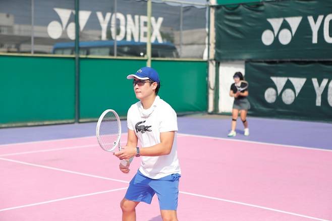 교류전을 통해 테니스를 즐기는 투어 참가자
